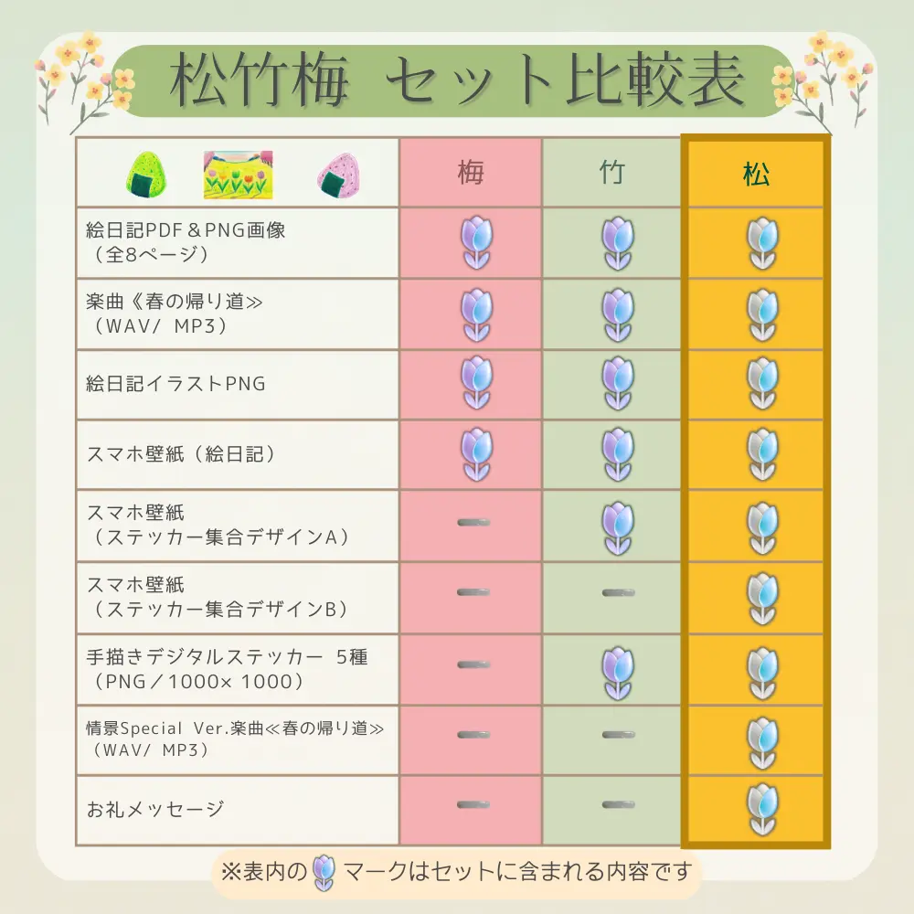 松竹梅のセット内容は、以下のような違いがあります。